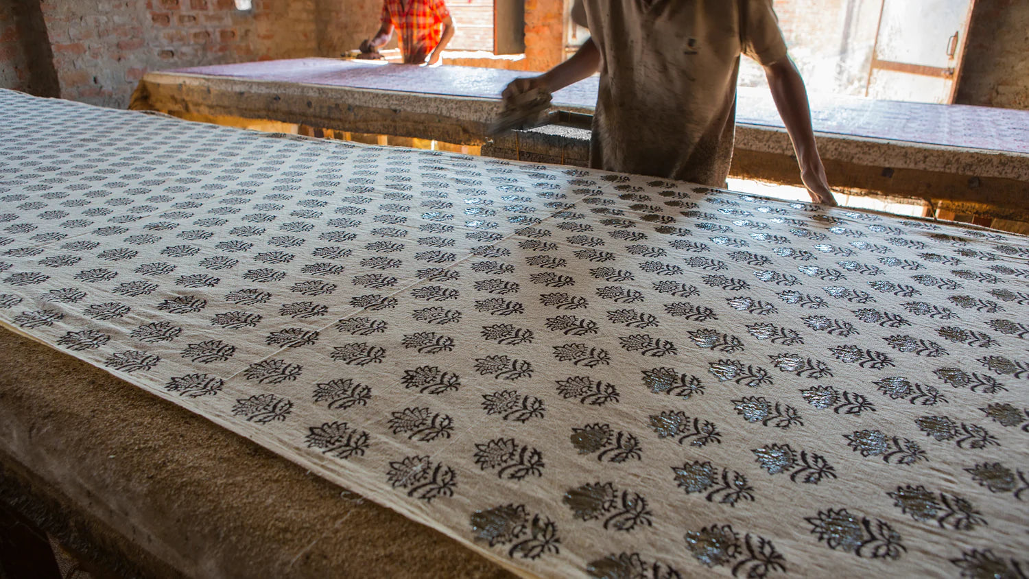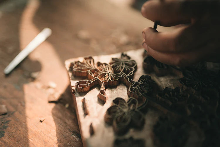 Notre atelier partenaire à Jaipur, au Rajasthan, perpétue l’art du blockprint, une technique d’impression à la main transmise depuis des générations.